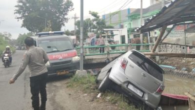 Mobil Milik Warga Desa Plandaan Jombang, Tabrak Warung dan Terperosok Kesungai