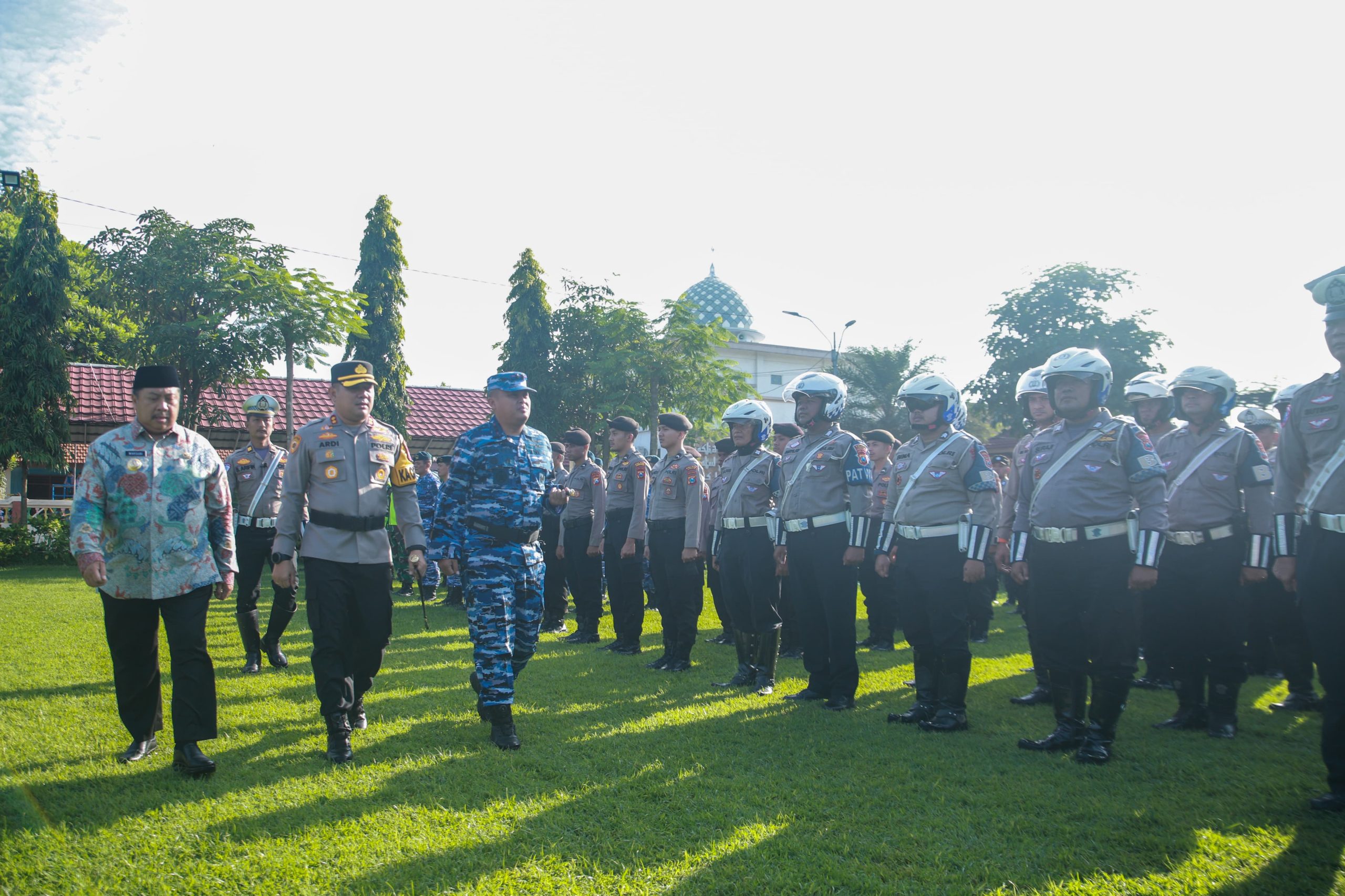 Apel Gelar Pasukan dipimpin Kapolres Jombang AKBP Ardi Kurniawan, S.H., S.I.K., CPHR didampingi Bupati dan Dansat Radar 222 Ploso, Jombang menegaskan kesiapan jajarannya dalam memberikan pelayanan terbaik kepada masyarakat selama periode mudik Lebaran.