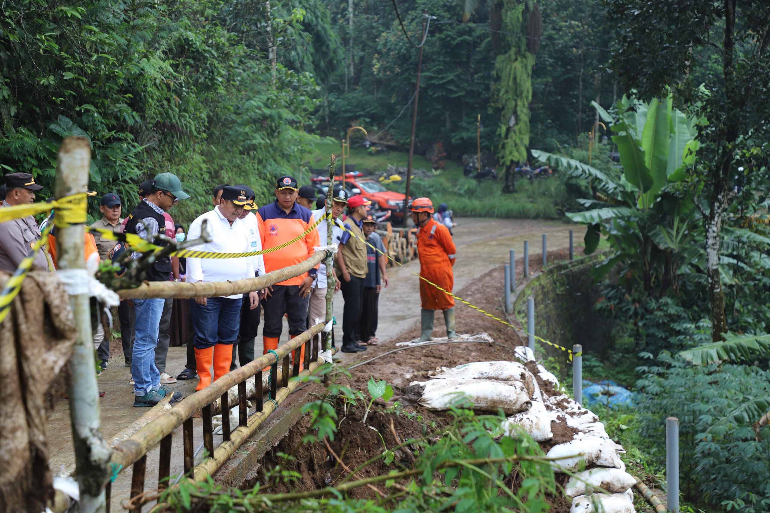 “Siang ini, kami meninjau langsung lokasi longsor di Dusun Ngeseng, sebagai upaya kami dalam mengambil langkah-langkah penanganan yang tepat,” ujar Bupati Warsubi.