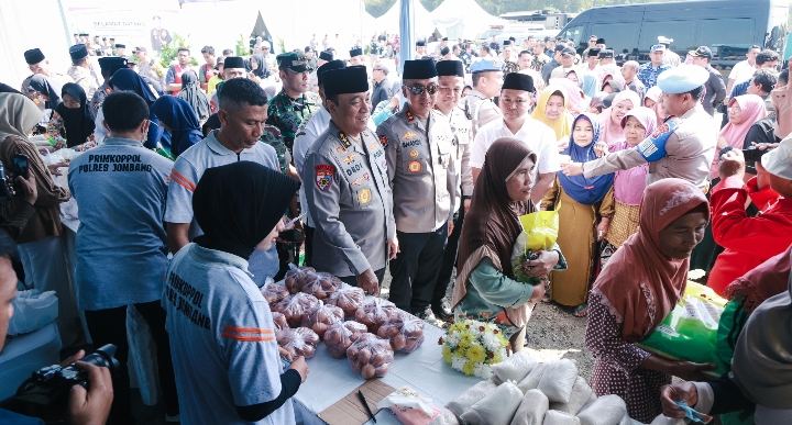 Gerakan bazar pangan murah ditinjau Irwasum Polri, As SDM Kapolri, Kadivhumas Polri, Forkopimda Jombang, pengurus Ponpes Tebuireng, para petani lokal, serta masyarakat sekitar yang antusias menyambut bazar pangan murah tersebut.