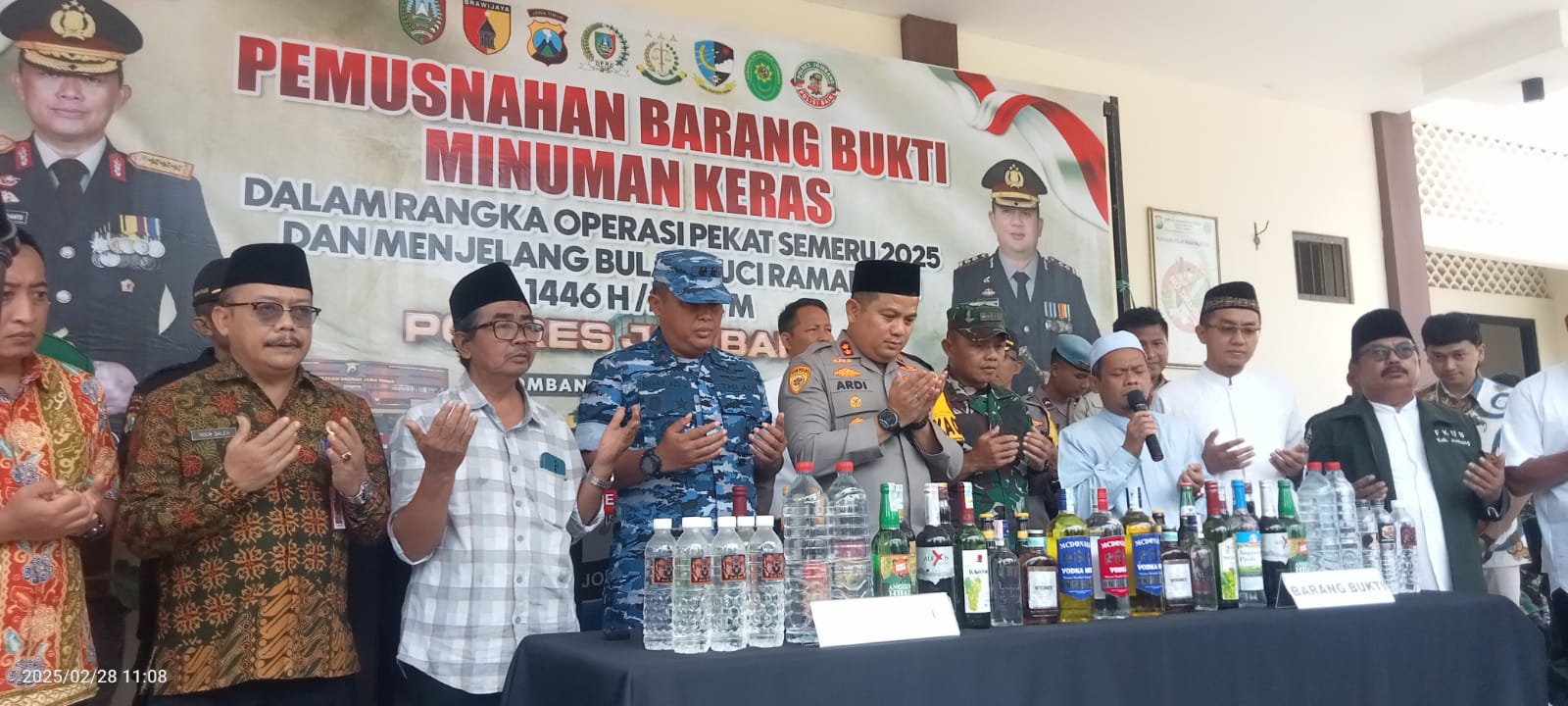 Ribuan minuman keras (miras) dari berbagai merek merupakan hasil dari Operasi Pekat Semeru 2025 yang ditingkatkan selama satu bulan terakhir dengan sasaran minuman keras.Bersama forkopimda dan tokoh agama pemusnahan barang bukti dilaksanakan di halaman Satreskoba Polres Jombang.