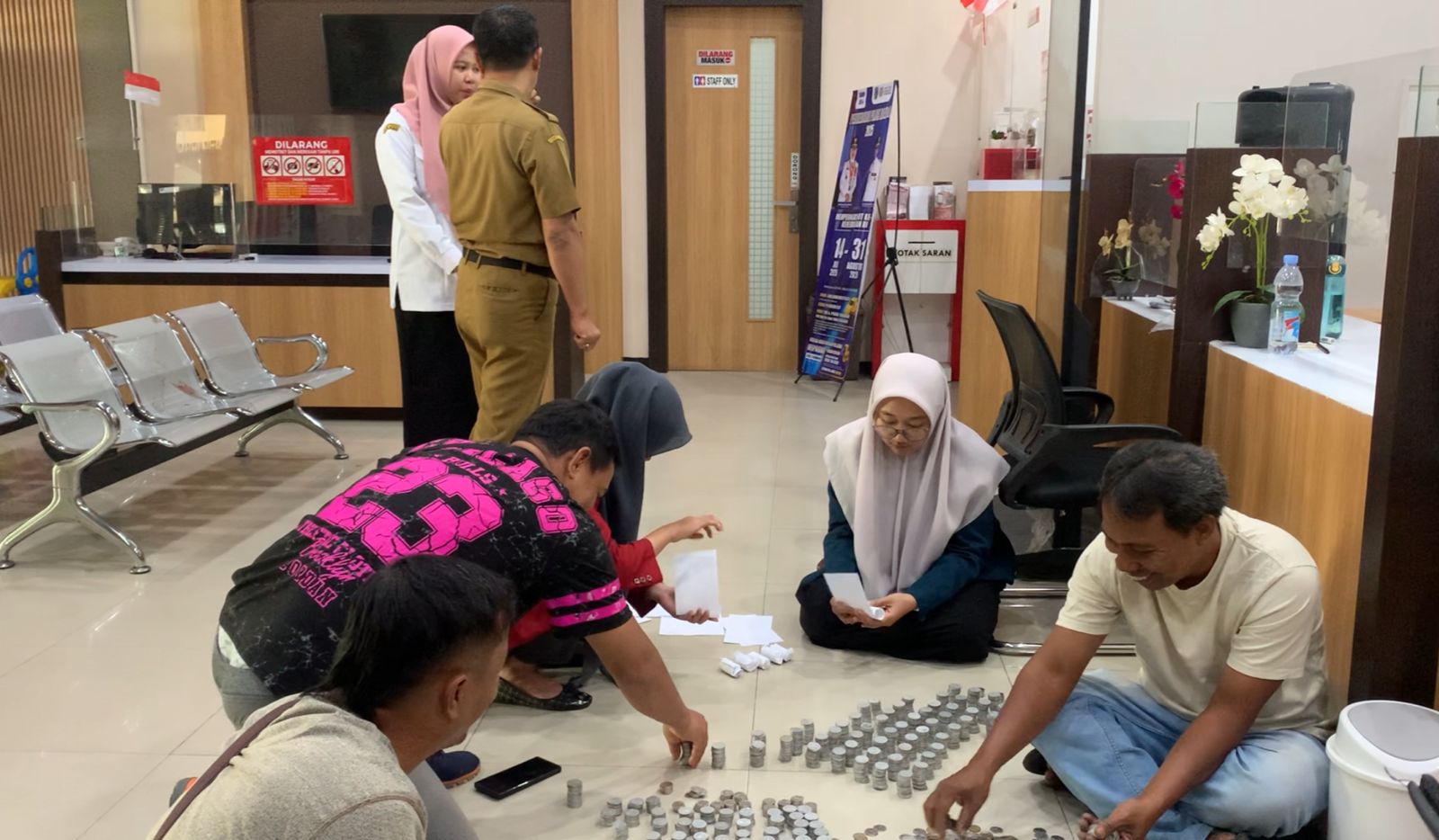 Suasana di kantor sempat tegang saat Fattah memaksa pembayaran dilakukan dengan koin. Petugas kemudian menghitung uang tersebut secara manual.
