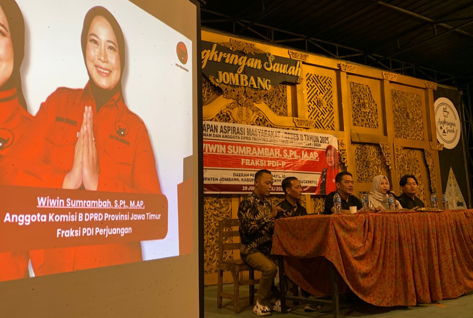 SeputarJombang.com – Suasana keakraban terasa kental saat Anggota DPRD Provinsi Jawa Timur, Wiwin Sumrambah, menggelar kegiatan reses II tahun 2025. Bertempat di angkringan sederhana pinggir sawah, tepatnya di Desa Rejoagung, Kecamatan Ngoro, Jombang pada Sabtu (28/6/2025) malam itu, dihadiri ratusan warga dengan antusias.