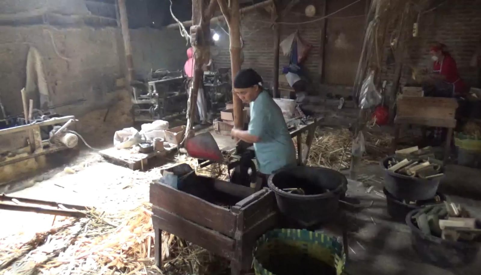Foto : Suasana pembuatan tusuk sate di Sumobito Jombang. (SeputarJombang.com / Dandy Angga)
