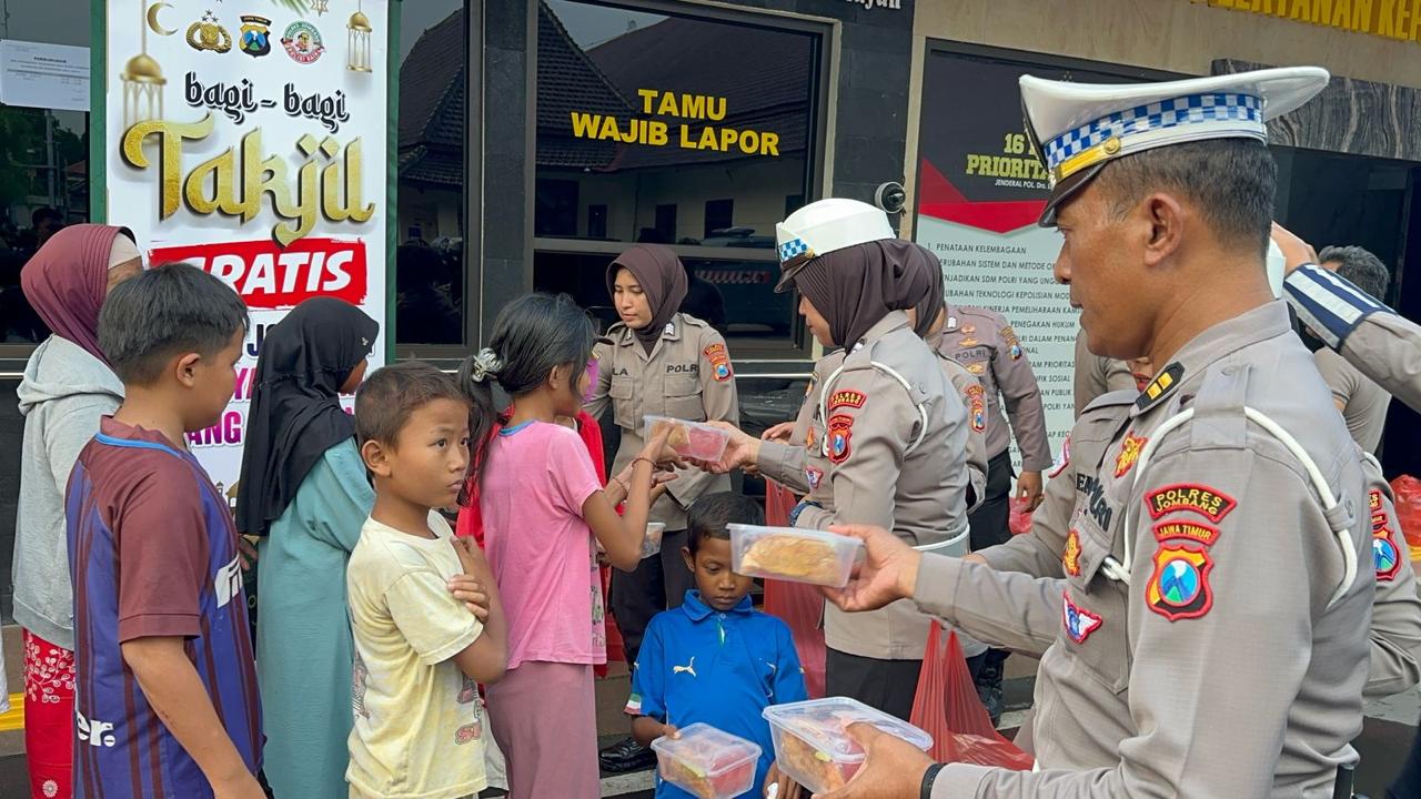 Kegiatan membagikan takjil ini melibatkan sejumlah anggota Kepolisian. Dengan penuh kehangatan, mereka membagikan ratusan paket takjil kepada pengendara roda dua, roda empat, serta warga yang melintas menjelang waktu berbuka puasa.