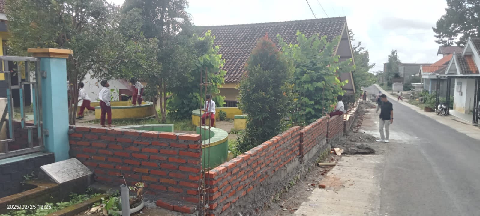Wonosalam,SeputarJombang.Com-Proyek pembangunan pagar Sekolah Dasar Negeri (SDN) Sambirejo 1 Wonosalam Jombang Tahun 2025 diduga berdiri diatas pondasi bangunan lama.Senin (10/3/2025).