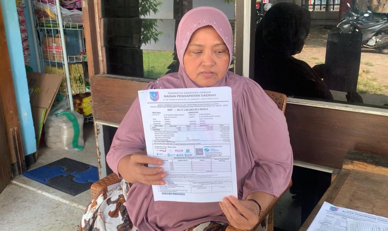Salah satunya Anis Purwaningsih (63), warga Desa Sengon, Kecamatan Jombang. PBB P2 dua objek tanah miliknya melambung dari Rp 400 ribu pada 2023 menjadi Rp 3,5 juta di 2024.